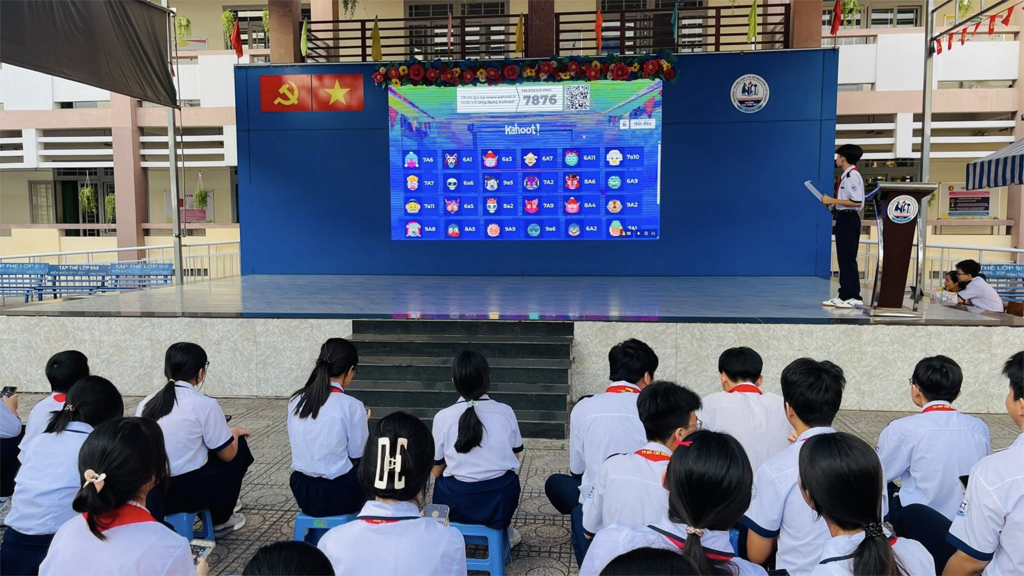 Thay vì những câu hỏi đáp truyền thống, một màn hình lớn đã được chuẩn bị để hiển thị các câu hỏi trắc nghiệm tình huống về cách ứng xử trên không gian mạng. Không khí sân trường THCS Nguyễn Chí Thanh thực sự "nóng" lên với những tiếng reo hò, bàn tán sôi nổi và sự tranh tài gay cấn giữa các khối lớp. Giao diện bắt mắt cùng âm thanh hồi hộp đặc trưng của Kahoot! đã biến một chủ đề tưởng chừng khô khan thành một sân chơi trí tuệ đầy hấp dẫn. Các em học sinh vừa được chơi, vừa tự mình khắc sâu những quy tắc an toàn bảo mật thông tin cá nhân và cách xử lý khi gặp tình huống xấu trên mạng.